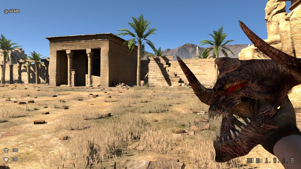 As mentioned in the last paragraph above, the game is centered in a near future version of Egypt that has been almost entirely destroyed by Mental’s forces. The newest game is this series that I have played, the game looks very pleasant and even shows a marked improvement over the HD remakes of the original two titles. The cartoon nature of Serious Sam 2 is removed entirely, although at times the game almost feels too ‘grayscale’. The original encounters had vibrant visuals in various historical settings, but the setting here feels almost like a Call of Duty game with monsters. I do appreciate that it retains the second game’s trait of having much of the environment be destroyable, as that does help the amplify the carnage.
